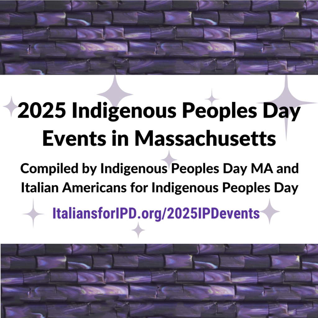 There are many opportunities to celebrate and honor Indigenous Peoples Day! View our comprehensive listing of IPD events across Massachusetts. Events will continue to be added as information becomes available. To include your event on this list, please email ItaliansforIPD@gmail.com.